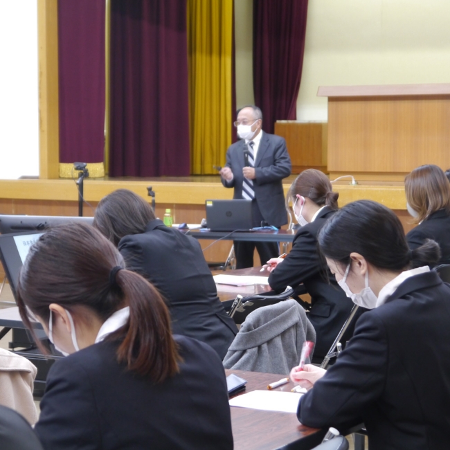 学生から社会人への意識の切り替えを行うことを目的に研修を実施しています。外部講師によるビジネスマナーや接遇の研修や、給食会社で働く上で知っておくべき知識を習得する研修を、座学だけでなくグループワークを通して学び、学んだ内容をアウトプットする習慣を新入社員の段階から身に付けていきます。