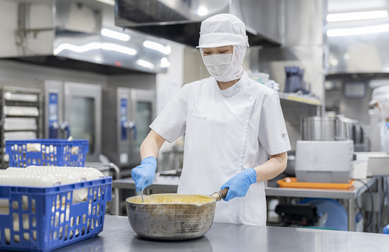 施設規模により数十人から数百人分の食事を1回で作りますが、ただ大量に食事を作れば良いというわけではありません。病院では、患者様の病状や治療方針に合わせて食事を作りますので、治療の一環という側面があります。